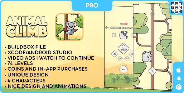 Introducing "Animal Climb (PRO) – BUILDBOX CLASSIC," an exhilarating mobile app designed for both iOS and Android platforms, that brings the excitement of climbing adventures right to your fingertips. Immerse yourself in a vibrant world filled with adorable animals overcoming challenges, all while earning rewards through engaging video content. This app is perfect for anyone seeking fun, entertainment, and a dash of competition.