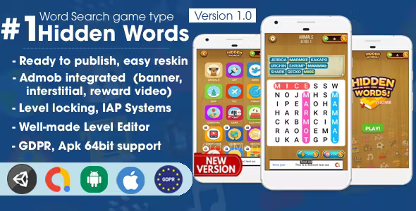 Introducing the Hidden Words – Word Search Game Unity Template, a premium mobile application template designed for developers who want to create an engaging and entertaining word search game. This template provides a robust foundation for building a captivating user experience that will keep players returning for more. Whether you’re a seasoned developer or just starting your journey in mobile gaming, this template is your key to unlocking creativity and generating revenue.