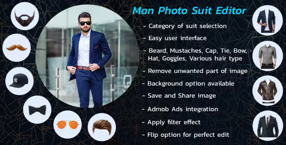 Introducing the Man Photo Suit – the ultimate photo editing application designed specifically for men who want to elevate their photography game. This innovative app allows users to seamlessly transform their images by adding stunning suit overlays that enhance their appearance, making it perfect for special occasions, professional profiles, or simply for fun. With the Man Photo Suit, you can effortlessly create a polished and sophisticated look in just a few taps.