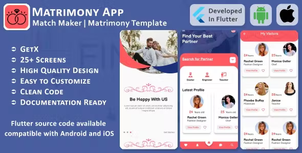 Introducing the Matrimony App – Match Maker, Search Partner – Flutter Mobile UI Template/Kit, the perfect solution for entrepreneurs and developers seeking to create a cutting-edge matchmaking application. This meticulously designed mobile UI template empowers you to build a user-friendly and feature-rich platform that connects individuals in their search for love and companionship. Available for both Android and iOS, this template streamlines the development process, allowing you to focus on customization and branding without the need to start from scratch.