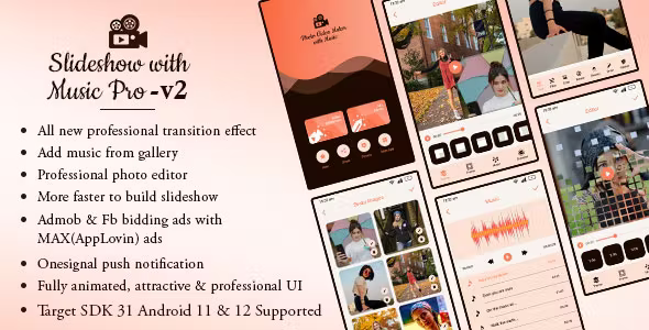 Introducing the "Slideshow With Music v2," an exceptional mobile app designed to elevate your visual storytelling experience. Whether you're a professional photographer, a social media enthusiast, or simply looking to create memorable presentations, this app offers a seamless solution to transform your photos and videos into captivating slideshows with music. With over 35 new professional slideshow transition effects included, you can craft stunning visuals that engage and inspire your audience.