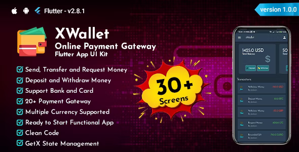 XWallet – Online Payment Gateway Flutter App UI Kit