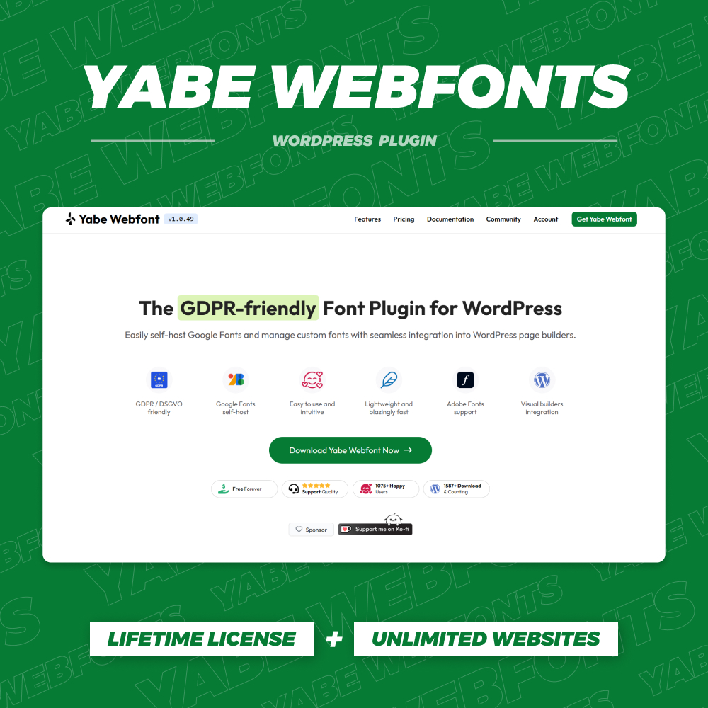 Introducing the Yabe Webfonts WordPress Plugin with an original license key – your ultimate solution for enhancing the typography of your WordPress website! If you’re looking to elevate your site’s aesthetic appeal and user experience, this plugin is designed just for you. Say goodbye to boring default fonts and hello to an extensive library of web-safe fonts that can transform your content into an eye-catching masterpiece.